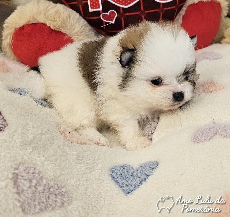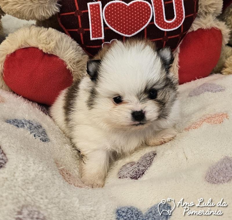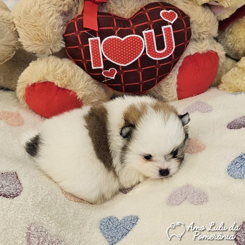 Lulu da Pomerânia Asiático Particolor Com aparência de boneco e pelagem farta que impressiona, esse Lulu da linhagem é simplesmente deslumbrante. Seu focinho curtinho, os olhos expressivos e o contraste elegante das cores fazem dele um filhote único e inesquecível. Extremamente peludo, com toque macio e visual encantador, ele é ideal para quem busca um Lulu exclusivo, doce e de presença marcante.